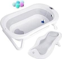 Baignoire Bébé Pliable avec Transat de Bain et Thermomètre Intégré - Baignoire Enfant avec 5 Balles et Siège de Bain Offerts - Idéal pour Cadeau de Naissance Fille ou Garçon : Amazon.fr: Bébé et Puériculture