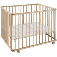 Nous nous sommes procurés ce parc sur Marketplace. On l'a choisi sur roulettes pour déplacer Pepino du salon à la cuisine et garder un oeil sur lui.