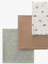 Découvrez ce lot de 3 langes en gaze de coton sur le thème "Roi des Forêts"