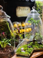 Lampe à poser fleur en rotin et pied en laiton - or, Linge de maison et décoration