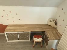 Bureau décoratif avec paniers de rangement, tabouret en bois