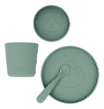 C'est l'heure du repas ? Votre petit bout mange comme un grand avec son joli set repas en silicone de Jollein. Grâce à la ventouse sous l'assiette et le bol, il ne renverse rien !
