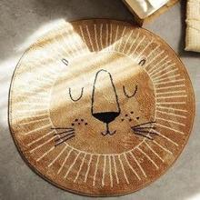 Tapis de chambre d'enfant Rond Lion ,Tapis de décoration Enfants, Lion brun-jaune, motif animalier, ø 120 cm