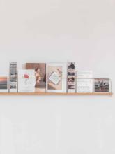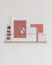 Personnalisez votre espace avec les étagères Super-Poses. Exposez vos photos, illustrations et souvenirs sans contrainte de cadre. La hauteur astucieuse de la barre de laiton facilite la présentation de différents formats, assurant une fixation simple avec des clous en laiton.