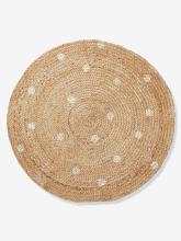 Tapis rond en jute à pois brodés - beige clair uni avec decor, Linge de maison et décoration