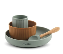 Kit repas - assiette, bol, verre, couverts en silicone Un kit de vaisselle en silicone pour accompagner le baby dans ses premiers repas ! 34,90€ Modifier