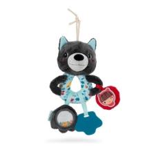 Dragon vert à suspendre à la poussette ou au siège auto avec bruit papier, hochet à billes, miroir.