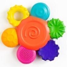 Le 2-en-1 hochet en silicone et fleur de dentition de Sassy est composé de plusieurs parties amusantes et stimulantes !