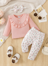 T-shirt À Bordure À Volants Pour Bébé Fille Et Pantalon Imprimé Floral Intégral Avec Bandeau