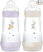 MAM Lot de 2 biberons Easy Start Anti-Colique 2+ mois débit moyen (2 x 260 ml) Lilas + Sable – Biberon pour réduire les coliques et l'inconfort de bébé – Biberon bébé compatible avec l'allaitement : Amazon.fr: Bébé et Puériculture