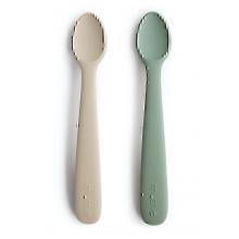 Mushie - Set de 2 cuillères en silicone Cambridge blue & Shifting sand - Sebio: