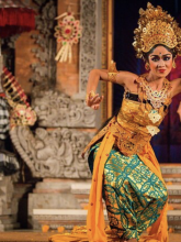 Un spectacle de danse Legong, une des formes les plus élégantes de la danse balinaise, dans le cadre historique du Palais d'Ubud.