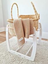 Un support à bascule blanc avec son couffin pour toujours pouvoir jeter un oeil sur mon petit frère