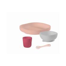 GAMME REPAS SILICONE COMPOSEE D’UNE ASSIETTE ET D’UN BOL AVEC VENTOUSE, AINSI QUE D’UN VERRE (CUILLERE 2EME AGE SILICONE INCLUS DANS LE SET). POUR ACCOMPAGNE...