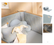 Ce tour de lit doux et moelleux a été conçu pour que bébé se sente dans son lit comme dans un cocon. Il est prévu pour couvrir environ la moitié du lit (lit de 60x120 ou 70x140) afin que l'air circule bien.
