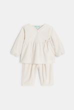 3m- Ce charmant ensemble en velours est composé d'une tunique et d'un pantalon. La tunique présente une coupe évasée avec un col croisé et un petit nœud décoratif. Les manches longues sont légèrement bouffantes pour plus de style. Parfait pour un port quotidien, cet ensemble offre un enfilage facile et un confort optimal.
