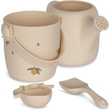 Caractéristiques techniques : - Ensemble de jouets de plage 100 % silicone.- 1 seau : H : 12,9 x L : 11,5 cm x L : 12,2 cm.- 1 pelle : H : 18 cm x L : 7 cm x L : 3,5 cm.- 1 arrosoir : H : 20 cm x L : 11,3 cm x L : 11,5 cm.- 1 moule à sable : H : 3 cm x L : 10,2 cm x L : 9,1 cm.