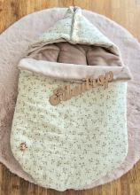 Une chancelière 100% artisanale personnalisée préparée par les doigts de fée de ma belle sœur, pour un baby au chaud <3