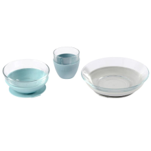 Bol, verre et assiette en verre muni d'un socle anti-dérapant