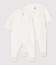 Pyjama bébé fille en velours et rehaussé d'un col en popeline brodé à la main.