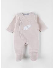 Pyjama velours épais, ouverture facile, attache doudou, anti-dérapant. Confort et douceur pour les nuits de bébé.