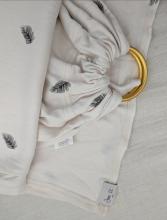 Ce porte-bébé crème en coton bio avec ses jolies feuilles de palmier est simple d’utilisation et physiologique.