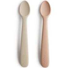 Lot de 2 cuillères en silicone Shifting sand/Blush de Mushie est disponible sur la boutique reve-dore dans la catégorie Mushie