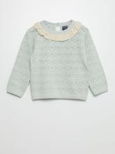 Le pull en maille macramé : un petit coup de coeur ! - Pull en coton - Maille ajourée - Manches longues - Encolure ronde - Animée d'une bordure en macramé - Ouverture boutonnée au dos - Finitions bords-côtelés