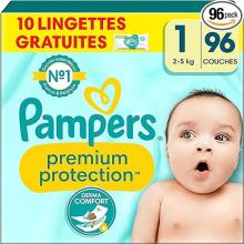 Pampers Couches Premium Protection Taille 1 (2-5 kg), Pack Duo (96 Couches Bébé 10 Lingettes Bébé Aqua Harmonie 0%), Notre N°1 Pour La Protection Des Peaux Sensibles, Convient aux Nouveau-nés : Amazon.fr: Bébé et Puériculture