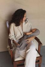 Wrap your little one in this knitted cocoon. Keeps your baby cosy and warm. You can use it without the cap on, or leave the arms outside the cocoon. 0-8 months Put the knot higher with newborns and make it come down when your baby grows Material: 100 % extra fine Italian merinowool (oeko-tex,mulesing free). It's not n