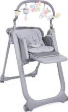 Elle est multifonction (relax, chaise haute à plusieurs hauteurs) avec une arche de jeu et repliable.