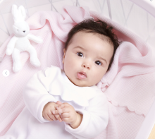 A déposer sur bébé lors de vos balades en famille ou à prendre avec vous lors de vos voyages, cette couverture se rendra vite indispensable au quotidien. En point mousse et décorée de festons, elle enveloppera bébé de douceur.