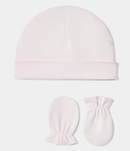 Composé d'un bonnet et de moufles assorties, cet ensemble naissance mise sur la douceur d'une maille souple en coton biologique. Indispensable de la valise de maternité pour couvrir et protéger des petites griffures, offrez-le à de futurs parents.