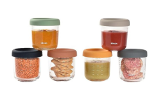 Conservez la nourriture de votre petit avec ce coffret de 6 pots de conservation en verre de 250 ml de Béaba. Les couvercles interchangeables de différentes couleurs sont faits en silicone et une graduation de mesure est visible sur le côté des pots. Les pots sont résistants à la chaleur et peuvent être mis au micro-onde (sans couvercle), au réfrigérateur et au congélateur. Le matériel durable et inerte ne tache pas et n'absorbe pas les odeurs, même après de nombreuses utilisations.