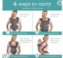 4 positions de transport : Face (nourrisson), face large, face à l'extérieur et sac à dos