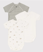 LOT DE 3 BODIES CROISÉS MANCHES COURTES IMPRIMÉS EN COTON