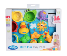 Un coffret avec 16 jouets différents pour m'amuser dans le bain.