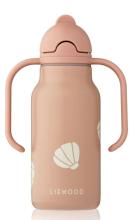 Le nid d'ange passe sangle en tricot Flower mellow rose de la marque Pasito a pasito protègera votre bébé du froid lors de vos sorties en voiture et en poussette.
