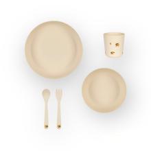 Un kit de vaisselle citronné pour votre mini ! Il contient une assiette, un bol, un gobelet et des couverts (fourchette et cuillère). |CARACTÉRISTIQUES| • 100% PLA (bioplastique).• Assiette: 19cm x 3,55cm. Bol: 14,5cm x 4,35cm. Gobelet: 7cm x 7,5cm. Couverts: 13,5cm x 2,5cm.• Passe au lave-vaisselle.
