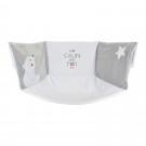 Tour de lit bébé Sucre d'orge gris avec de tendres appliqués ourson et étoile et une broderie. Modèle avec fond de lit.