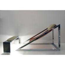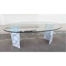 Piètement marbre veinures grises composé de 2 ellipses (Hauteur 72 cm Largeur 51 cm) sur lesquelles vient reposer un grand plateau en verre Securit épaisseur 2 cm.