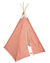 Avec sa structure en poteaux de peuplier et sa toile en tissu joliment bordée de pompons contrastés, ce tipi deviendra vite un élément phare d'une déco. Il est muni d'une petite fenêtre et d'une ouverture à l'avant qui peut se fermer grâce à des cordelettes : un véritable petit refuge propice à la rêverie, à la sieste et aux jeux !