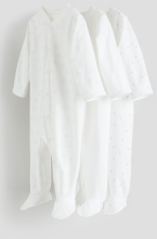 Pyjamas en jersey de coton très doux. Modèle à manches longues avec fermeture pressionnée devant, se prolongeant le long d'une jambe pour faciliter le change. Pieds fermés avec élastique sur l'arrière...