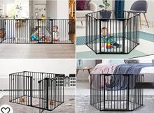 Grille de Protection Extensible pour Cheminée Escalier,Clôture de Cheminée pliant, porte inclus 380x74,5cm (Noir)