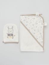 Une cape de bain avec des animaux trop mignons imprimés dessus ! - Cape de bain + gant - 100% coton - En éponge - Dimensions : 75 x 75 cm