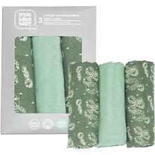 Trois Kilos Sept - Lot de 3 Langes bébé - Carrés de Mousseline Coton 70x70cm - Multi-usages: Couverture, Doudou, Bavoir, Protection Solaire - Certificié Oeko-tex - Motif feuille