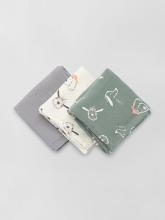 - 3 langes en gaze de coton, 1 uni et 2 imprimé 'chiens' all over. Dimensions : 60 x 60 cm.