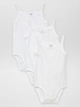 Des petits bodies pour bébé, des pièces indispensables pour sa garde-robe ; ) - 3 bodies - 100% coton en conversion - Maille pointelle - Col carré - Fines bretelles - Pressions à l'entrejambe - Nœud fantaisie devant