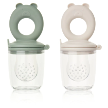 Avec un petit réceptable en bas, pour rattraper tout ce qui tombera à côté de la bouche et éviter de donner à manger au parquet ;) Dégotés à 9€ au lieu de 26€.