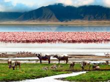 Les droits d'accès sont pour 3 personnes (nous 2 + notre guide) ainsi que pour notre Jeep. Considéré comme l'une des plus grandes merveilles du monde. Le cratère, caldera pour être plus précis, fait 20km de diamètre intérieur et abrite en son centre une faune incroyablement riche et parfaitement protégée par un rempart de 600m de haut couvet de forêt. Présence de tous les grands mammifères de l'Afrique de l'Est (éléphants, lions, rhinocéros)